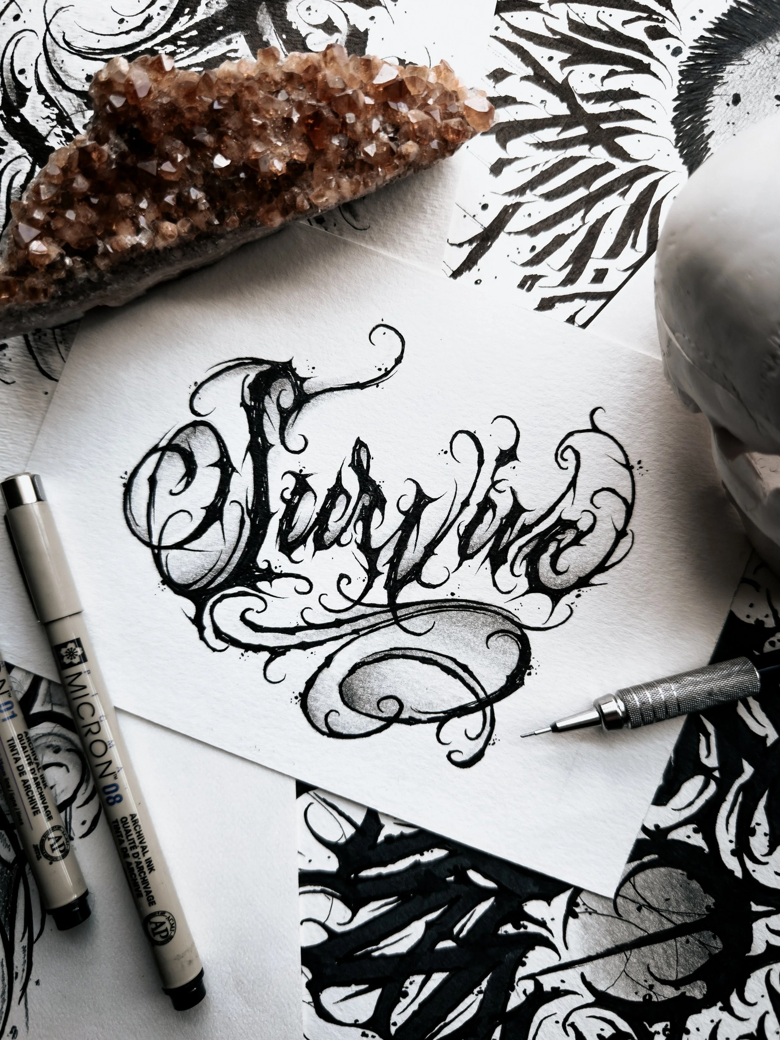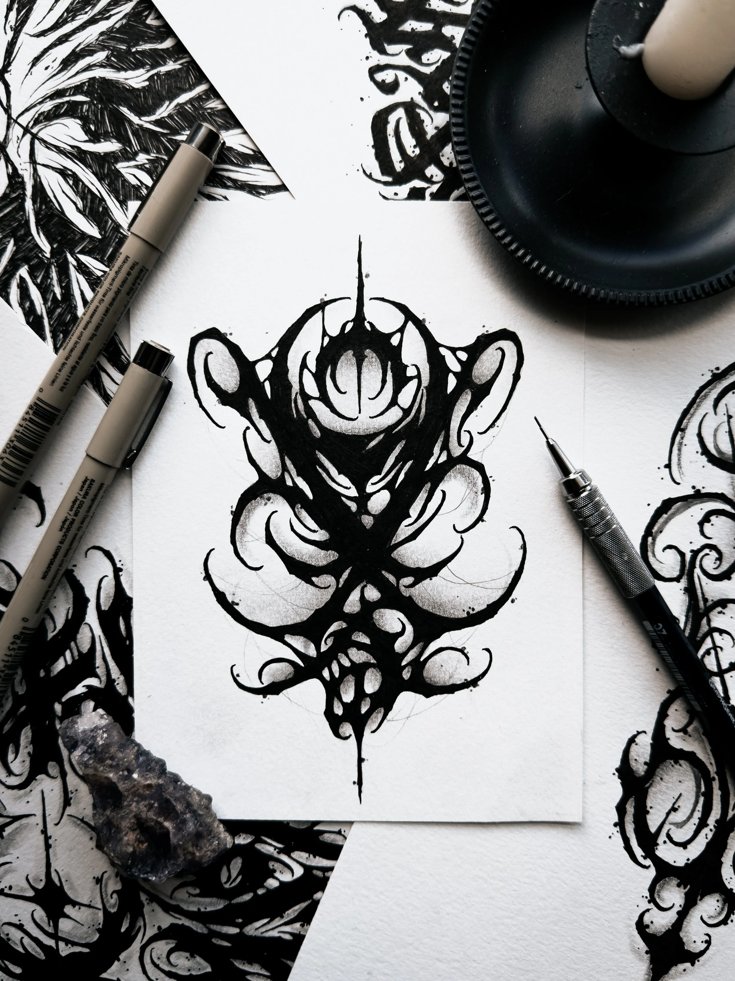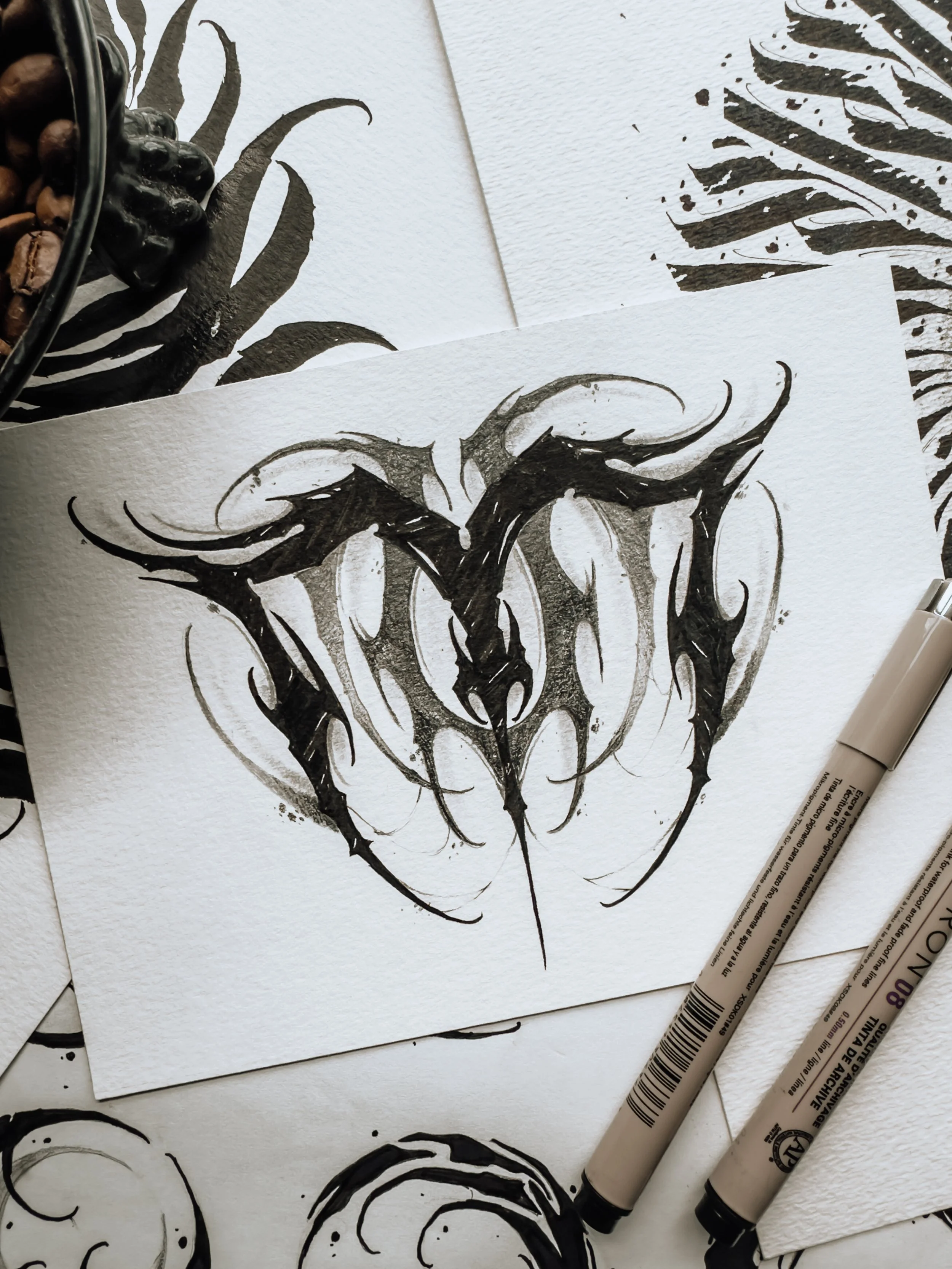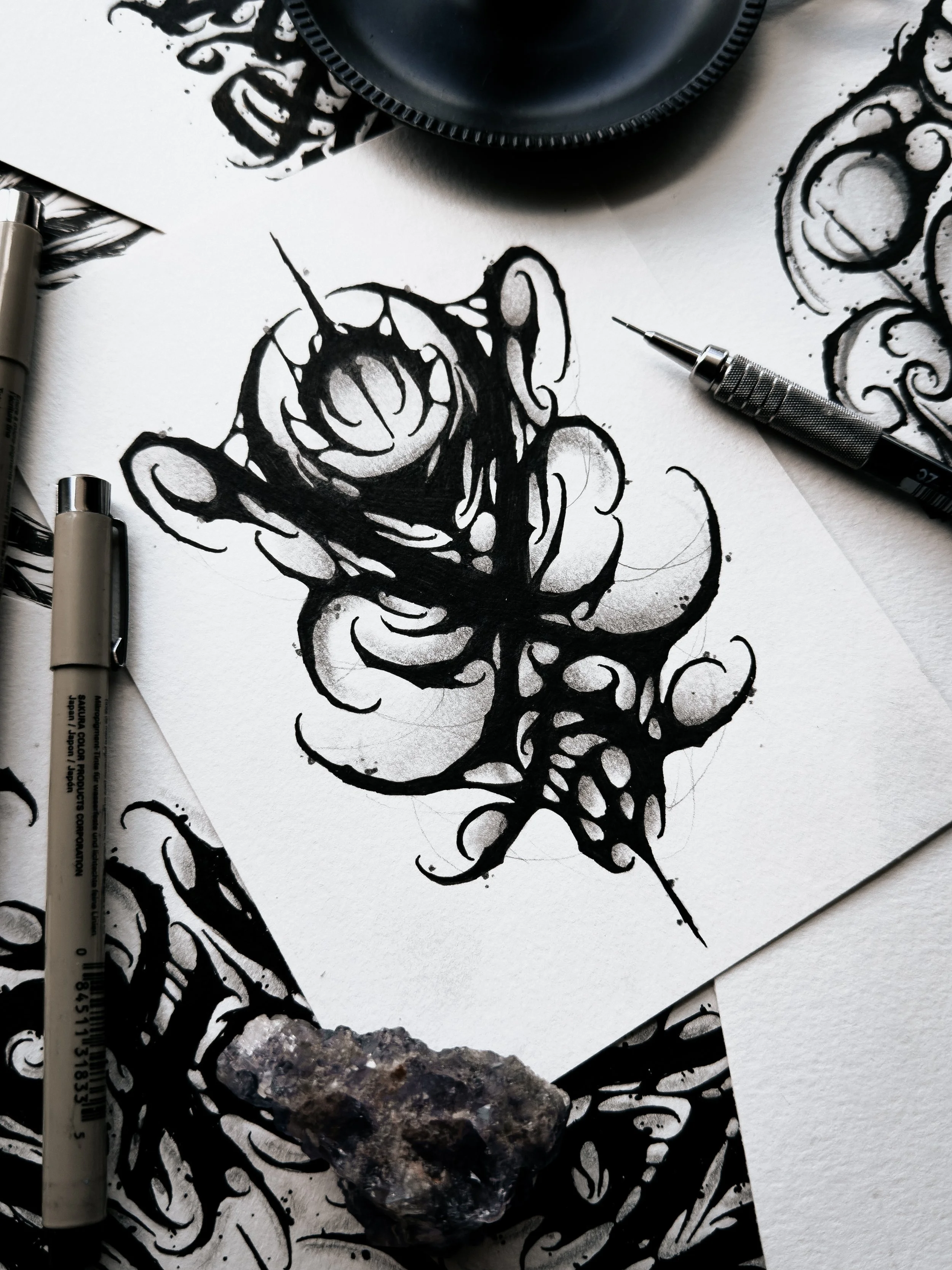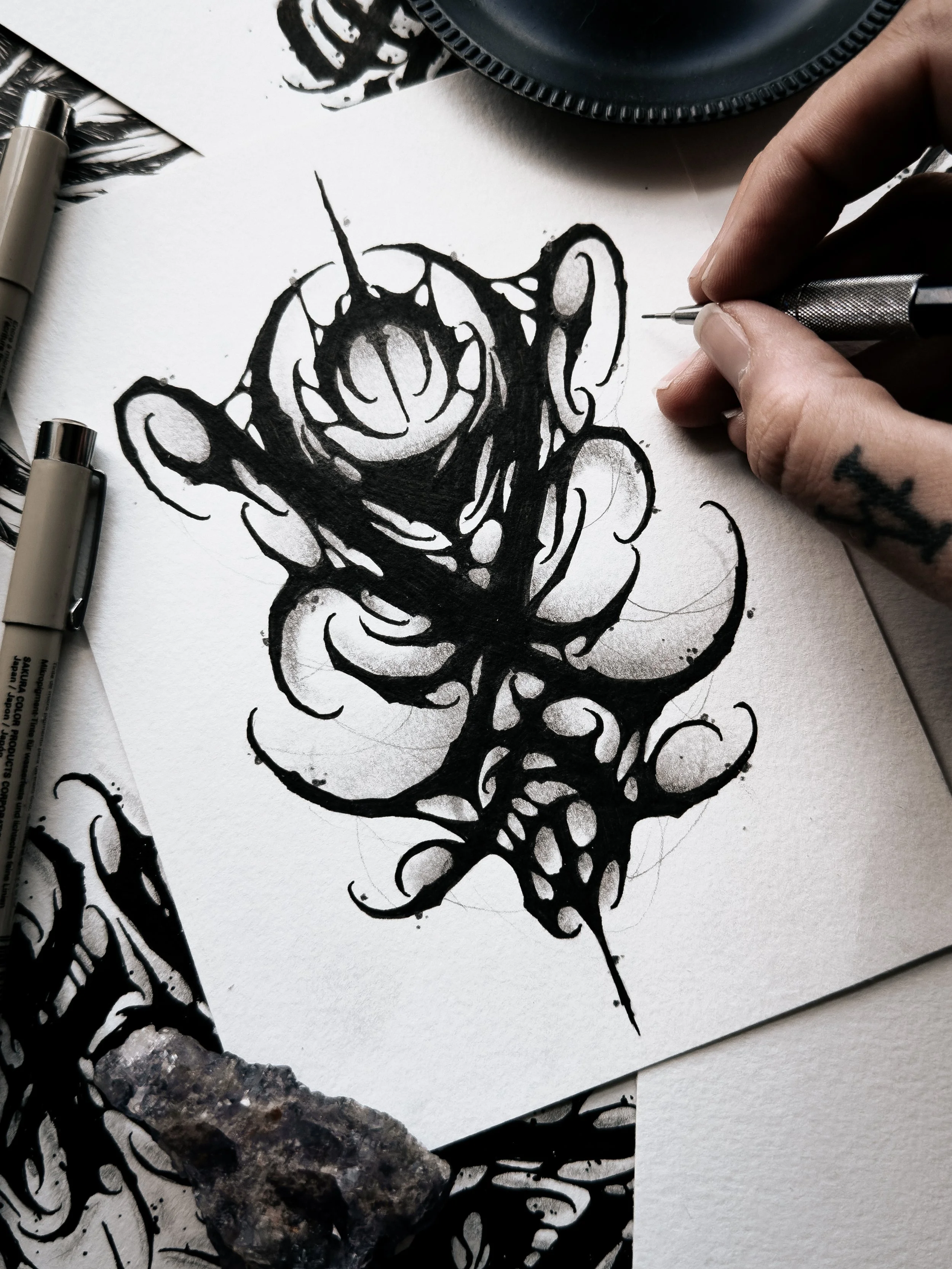 This dark abstract tattoo design is available to be tattooed at my private tattoo studio in Florida, Haus of Hel. There are no placement restrictions on this piece but it would look great as a forearm tattoo. This listing includes shipping information which allows me to offer afterpay as an option. The listed price is for the DEPOSIT of this piece. This design is a flat rate $500 ($200 deposit + $300 due day of)