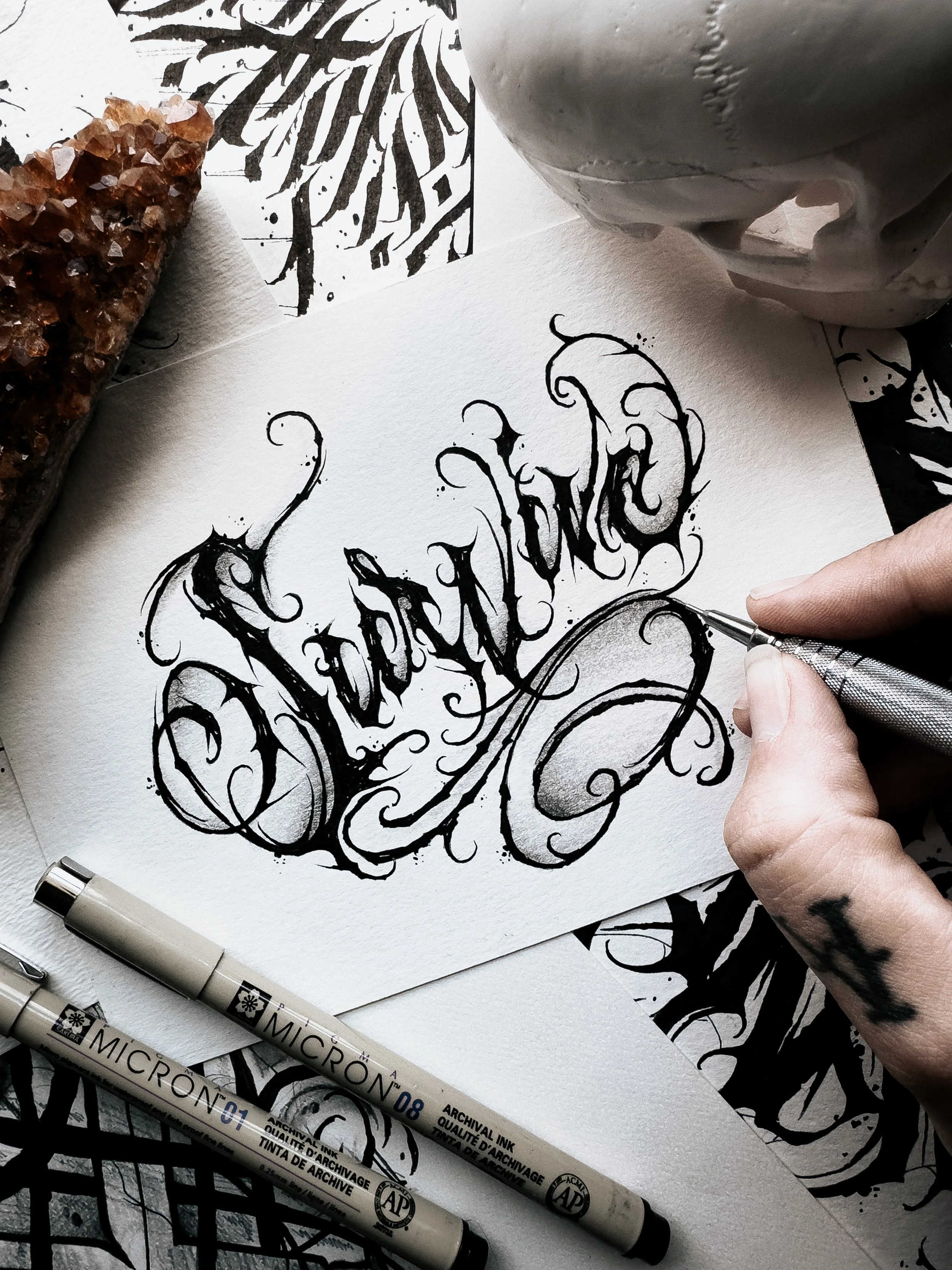 Manifest Dark Lettering Predrawn Tattoo Design (Read Description)